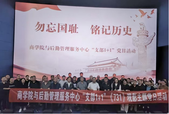 为纪念中国人民抗日战争暨世界反法西斯战争胜利80周年,铭记历史真相,凝聚奋进力量,9月24日下午,商学院教工党支部与后勤管理服务中心党委联合开展支部“1+1”《731》观影主题党日活动。商学院教工党支部与后勤管理服务中心党委部分党员参加活动。