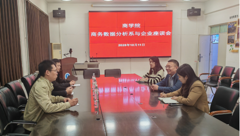 10月11日下午,商学院商务数据分析系于教学楼7B411会议室与前来我校参加秋季毕业生“双选会”的部分企业进行座谈。北京中云国创数据科技有限公司、河南紫光信息科技有限公司、郑州燚轩软件科技有限公司等企业代表,商务数据分析系主任刘忠广,教师代表喻晓博士、张亚敏博士等参会。